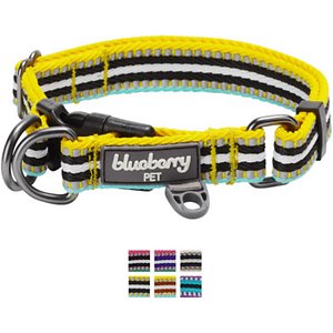 Blueberry Pet 3M Reflective Multi-Colored Stripe Dog Collar, Yellow & Azure
