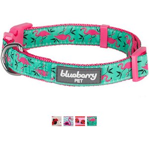 Blueberry Pet Spring Prints Dog Collar, Pink Flamingo on Light Emerald