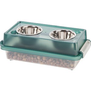 IRIS Elevated Feeder with Airtight Food Storage, Green/Gray