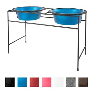 Platinum Pets Modern Double Diner Elevated Wide Rimmed Pet Bowls, Sapphire Blue