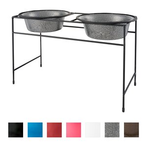 Platinum Pets Modern Double Diner Elevated Wide Rimmed Pet Bowls, Silver Vein