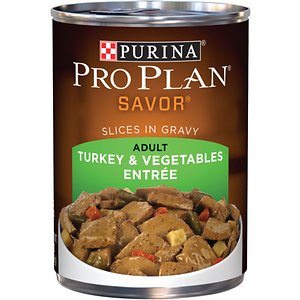 Purina Pro Plan Savor Adult Turkey & Vegetables Entree Slices in Gravy Canned Dog Food, 13-oz case of 12