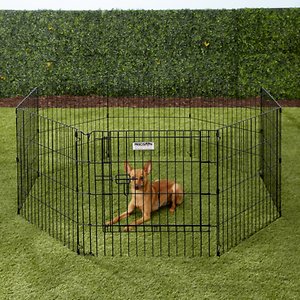 Precision Pet Products Ultimate Exercise Pen’s durable construction includes eight 2 ft-wide panels totaling 16 feet in length. All pens have a black electroplate finish, added after welding, to reinforce protection and increase the pen’s value.