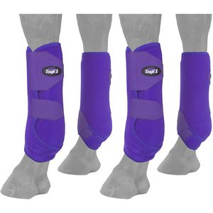 Tough-1 Extreme Vented Horse Sport Boots Set contains four lightweight boots that are made to closely contour the shape of the lower leg and provide solid, steady support as well as protection against bumps, bruises and soreness. Each boot features three strong quick-grip closures that hold each boot securely and correctly in place. The perforated neoprene allows for air-flow and let’s heat escape. These comfortable boots fit most Draft Horses, plus they’re easy to clean.