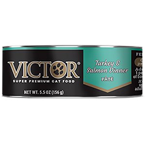 Give your cat the nutrition he needs with the taste he loves with VICTOR Turkey & Salmon Dinner Paté! This palatable pate is crafted with premium-quality ingredients like real turkey, turkey broth, liver, potatoes, salmon, peas, carrots and more! This recipe is specially crafted to provide feline friends with normal activity levels with the well-balanced nutrition they deserve. VICTOR Turkey & Salmon Dinner Pate is formulated to meet the nutritional levels established by the AAFCO Cat Food Nutrient Profiles for Growth and Maintenance.